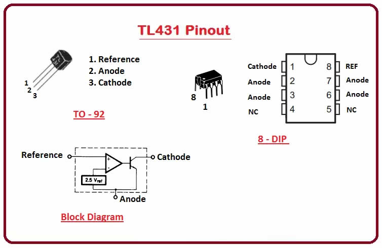 TL431 adalah programmable shunt voltage reference — seperti dioda zener yang presisi dan bisa disesuaikan.